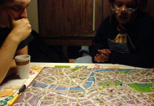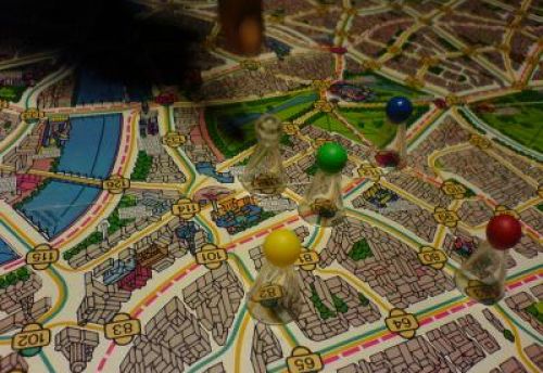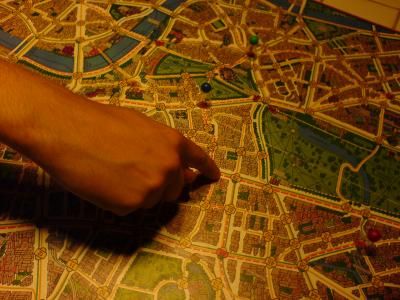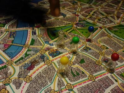 Partie de test pour tout le monde. Je pris mister X en main, Loïc et Cybill prirent 2 détectives chacun. La mission fut très coriace. Je semais de justesse le filet de la police en taxi par deux fois… et finis par définitivement les exaspérais en m’échappant avec un black ticket par la Tamise. Ils abandonnèrent leur poursuite au 18ème tour n’ayant plus assez de ressources pour espérer me coincer !! Bien belle partie.
