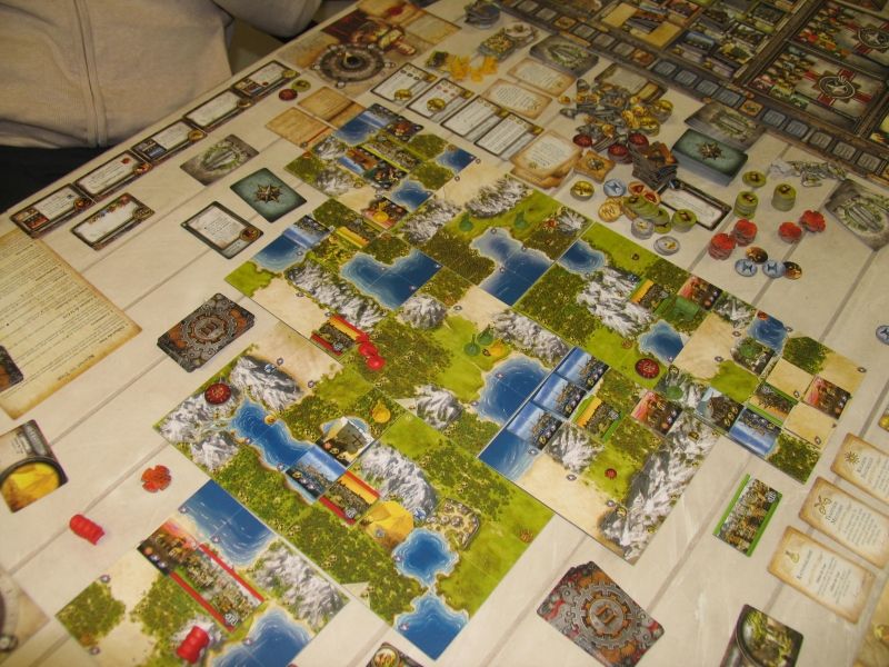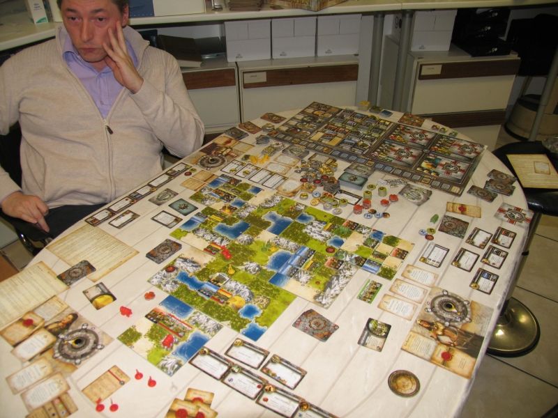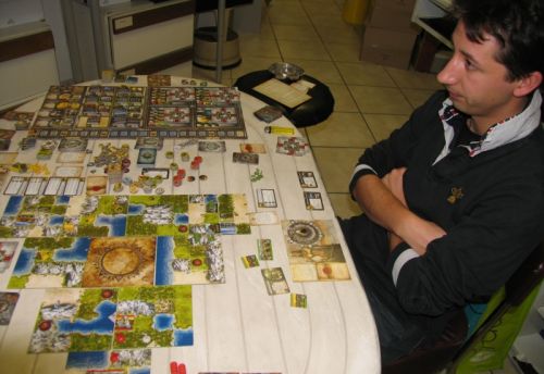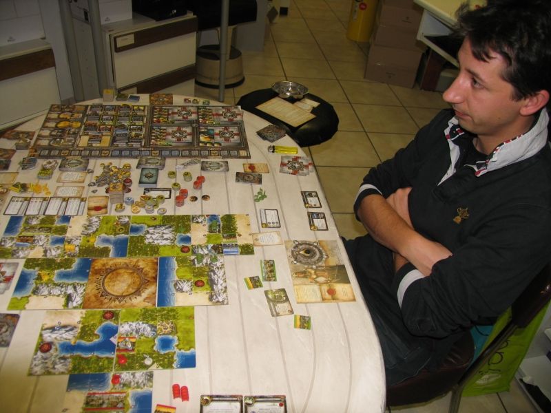 Il te manquait une stratégie globale je pense Florent pour disputer la victoire. Mais cela est normal tant la courbe d'apprentissage de ce jeu est grande. Lire les règles davantage t'aurait donné une plus grande connaissance théorique. Mais, avec ce genre de jeu il faut pratiquer, essayer des combinaisons et trouver des façons de jouer et de gagner. Toute ta stratégie doit s'efforcer de suivre ce but. Il y a tant de tentations, de choses à faire, qu'on a vite fait de partir dans tous les sens.