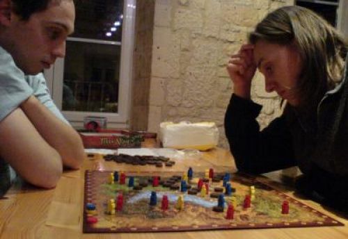 Initiation pour moi sur ce jeu. Mais le café Latin devant fermé ces portes, nous dûmes interrompre la partie...