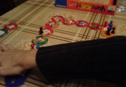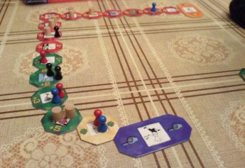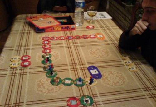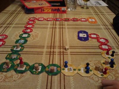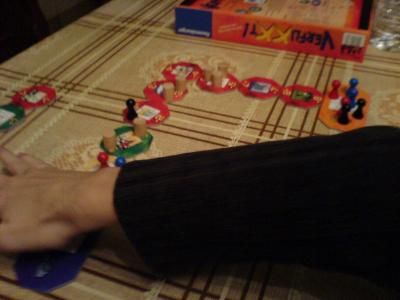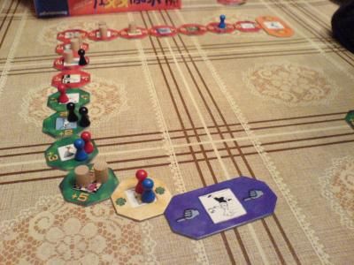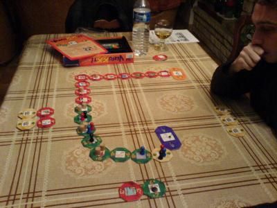 Partie de découverte pour moi et Tristan. Je pensais avoir bien commencé... puis j'oubliais la règle essentielle que les pansements transformés les points négatifs en positifs, pensant que ceux ci les mettaient à zéro uniquement. Lorsque j'ai découvert le poteau rose, Loïc avait 3 pansements, et j'avais laissé Tristan en prendre deux, voyant qu'il avait déja beaucoup de points négatifs.
